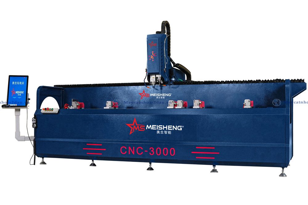 Trong sản xuất cửa nhôm hiện đại, các công đoạn khoan khóa, khoan lỗ và phay bản lề đòi hỏi độ chính xác tuyệt đối. Chỉ một sai số nhỏ cũng có thể làm hỏng toàn bộ bộ cửa. Meisheng CNC 3000 ra đời để thay thế phương pháp khoan thủ công, mang đến sự tự động hóa hoàn hảo cho các xưởng nhôm.