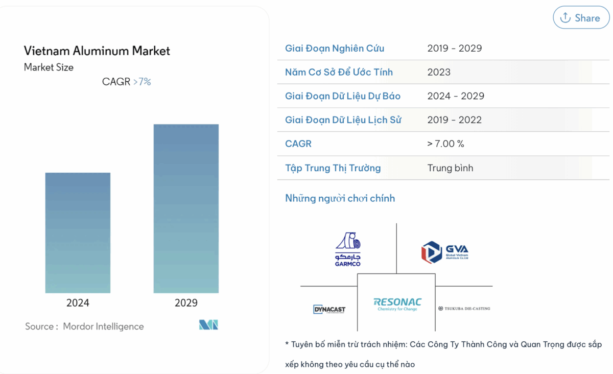 Thị trường nhôm Việt Nam đang tăng trưởng mạnh với tốc độ trên 7% mỗi năm, kéo theo nhu cầu lớn về cửa nhôm chất lượng cao, sản xuất nhanh, đồng bộ. Trong bối cảnh cạnh tranh ngày càng gay gắt, việc đầu tư máy sản xuất cửa nhôm hiện đại, tự động hóa chính là chìa khóa giúp doanh nghiệp nâng cao năng lực và chiếm lợi thế trên thị trường.